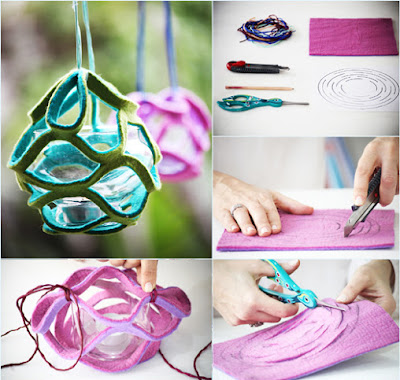 Hoje trago mais uma ideia que encontrei na net de iluminárias, feitas de tecido de feltro, como a imagem abaixo: